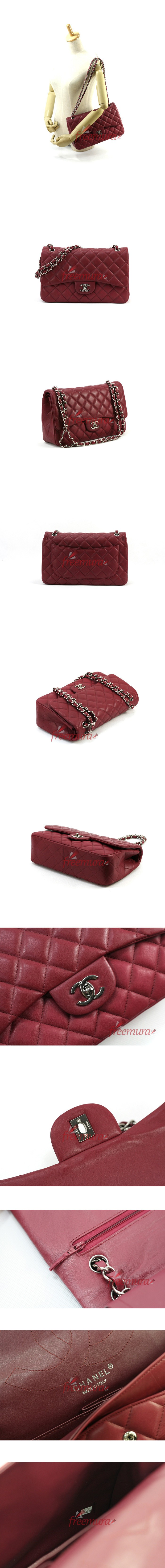 샤넬 클래식 램스킨 와인 은장