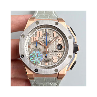 Size: 44 mm Movement: SWISS Audemars Piguet 3126 Automatic Movement 28800bph, SECONDS Running at 12@ Functions: Hours, Minutes, Seconds, Date and Chronograph with SECONDS Running at 12@ Like Genuine Case: 18K Rose Gold Dial: Gray Dial with Rose Gold Markers Bezel: Titanium Bezel Crystal: Scratch-proof sapphire crystal with AR coating Strap: Gray Leather Strap and Gray Rubber Strap Clasp: Deployment Clasp Water resistance: 50 Meters