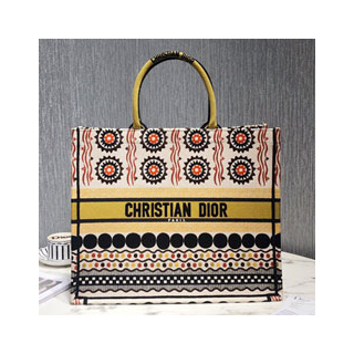 멀티컬러 자수 장식 패브릭 Dior Book Tote 백
