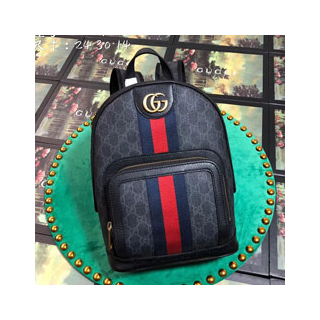 오피디아 백팩. 다양한 사이즈와 디자인으로 선보이는 시그니처 실루엣. GG 수프림 캔버스로 제작. 텍스처드 가죽 트리밍. 1950년대부터 컬렉션에서 선보인 구찌의 모티브를 참조하여 하우스의 풍부한 유산이 그대로 드러나는 디테일로 완성한 그린 웹(Web) 디테일 인레이 및 더블 G 장식.